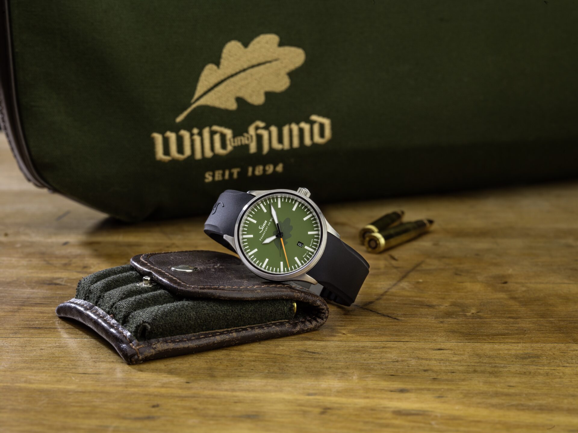 Ale pojďme zpět do Německa. Pro magazín pro myslivce a lovce vzniklo hned 125 individuálně číslovaných hodinek Sinn 836, které jsou nabízeny za 2 350 euro. Vybavené jsou jen trojicí ruček indikujících hodiny, minuty a sekundy, které dotváří okénko data. Zaujmou tedy perfektní čitelností, stejně jako olivově zeleným ciferníkem s motivem dubového listu z loga magazínu.