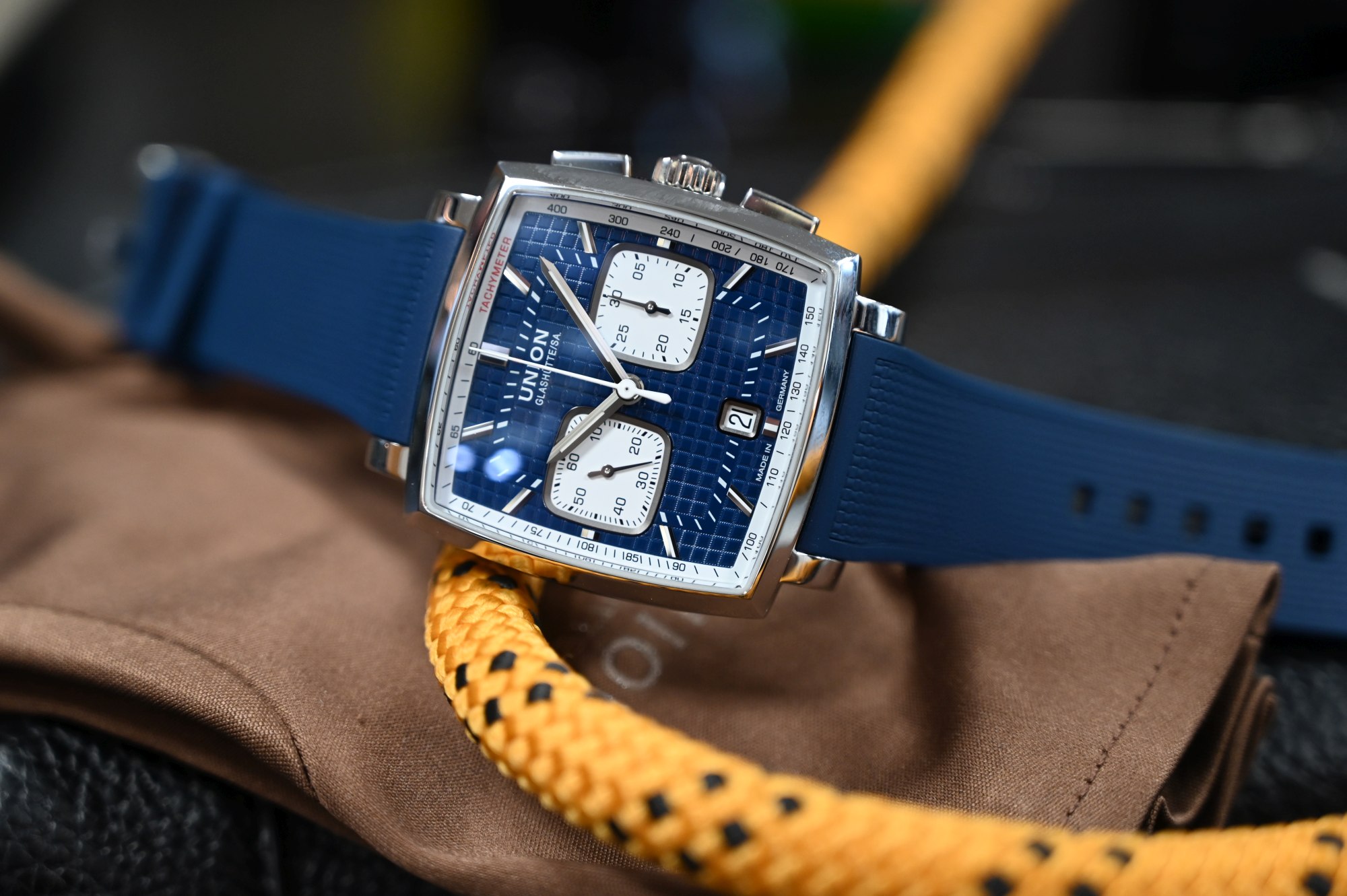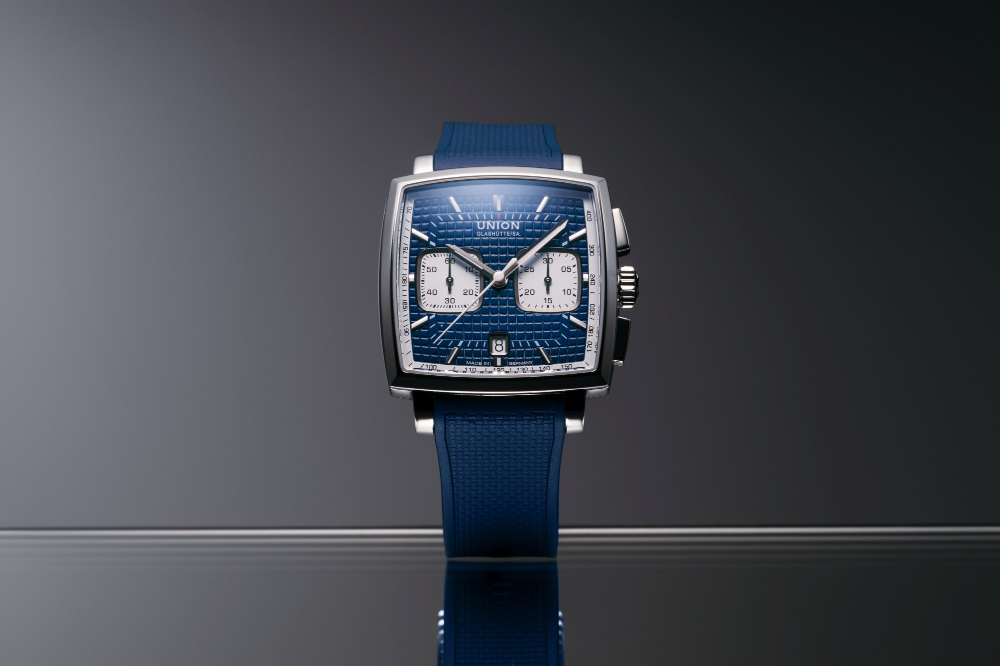 Charakter hodinek Union Glashütte Averin Chronograph podtrhují i řemínky. Perforovaná kůže odkazuje na závodní rukavice, zatímco strukturovaný kaučuk přináší současný sportovní výraz. Díky systému rychlé výměny lze styl měnit stejně snadno jako náladu – od elegantního po ryze dynamický.