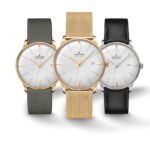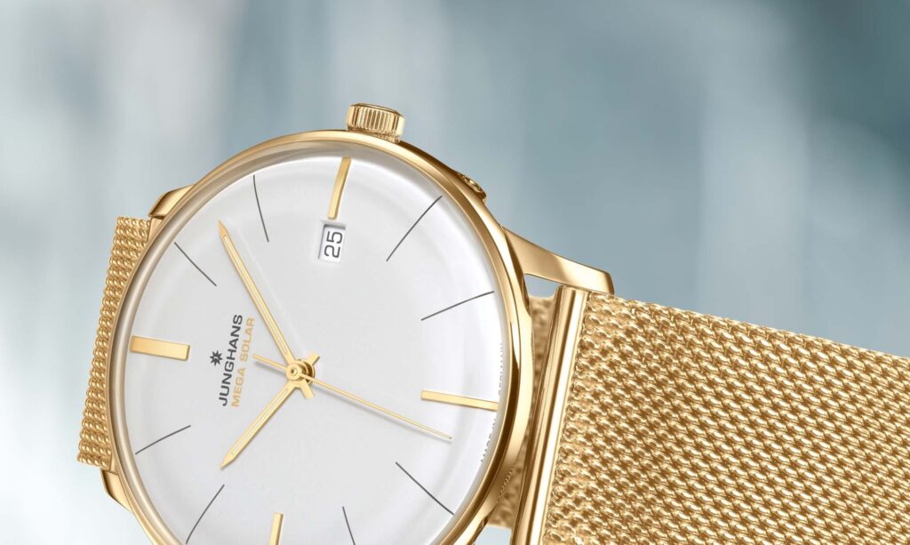 Estetická variabilita pak podtrhuje univerzálnost modelu. K dispozici jsou tři verze – od čisté ocelové varianty na koženém řemínku až po výraznější provedení v teplém zlatém tónu s milánským tahem. Každá z nich zachovává charakteristickou střídmost, která je pro Junghans typická, a zároveň nabízí odlišnou interpretaci elegance.
