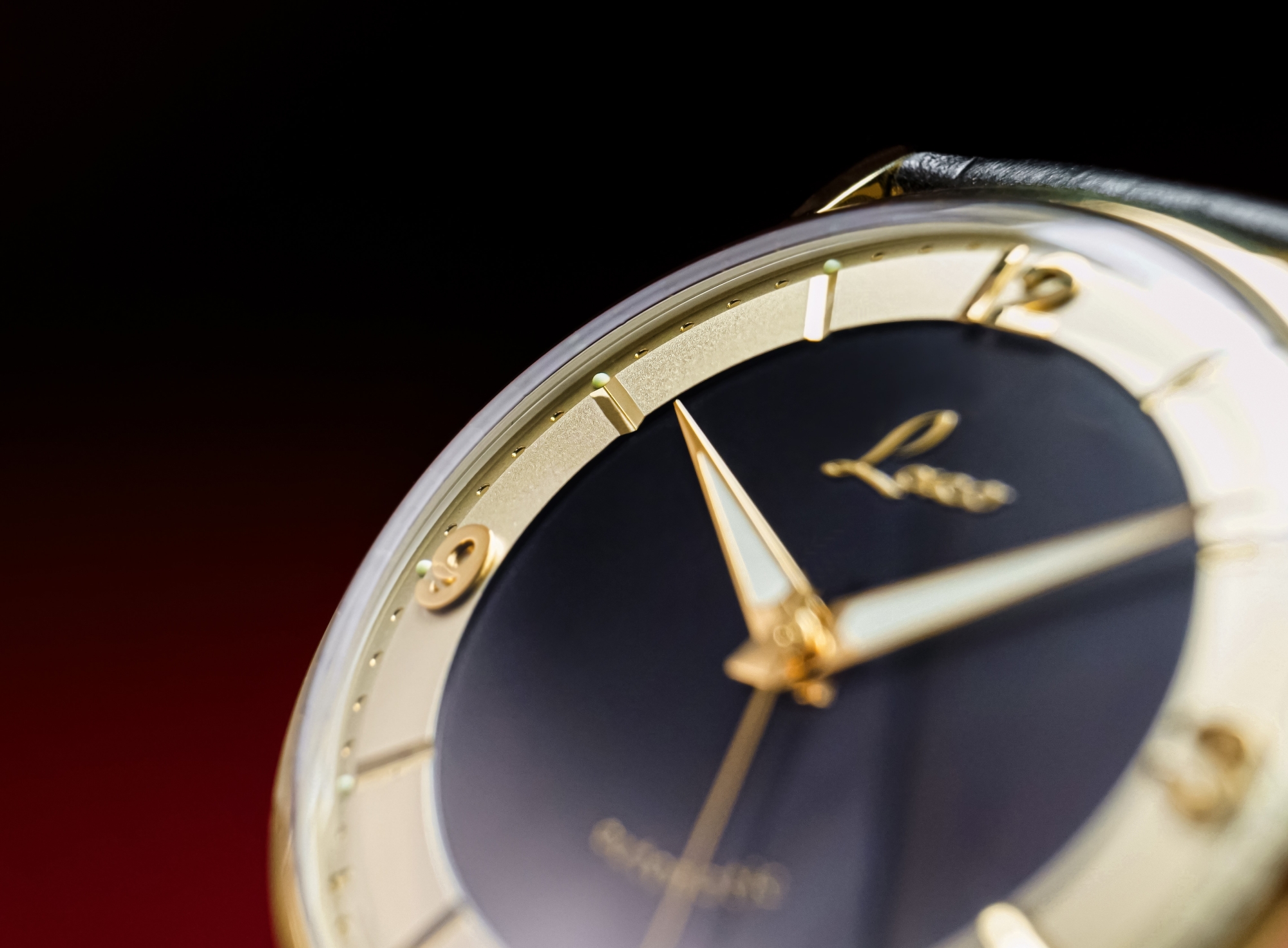 Samostatnou kapitolou je dvojitě klenuté boxové safírové sklíčko, které se směrem k okrajům prudce lomí – prvek tradičního hodinářství, dnes už jen zřídka vídaný. Na dýnku se pak vyjímá laserem ryté slunce, historický motiv používaný Laco v 50. a 60. letech, nyní elegantně vrácený do hry.