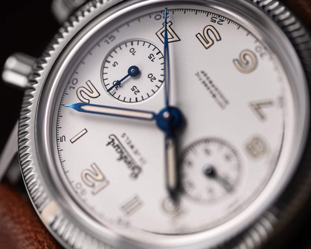 Novinka poprvé přináší bílý ciferník legendárního chronografu 417 ES v jeho původním průměru 39 mm. Inspirací se stala extrémně vzácná varianta z 50. let minulého století, která se vědomě odkláněla od ryze vojenské estetiky. Zatímco většina historických modelů 417 byla vybavena tmavým ciferníkem, několik málo kusů vzniklo v civilním provedení s bílým podkladem a modřenými ručkami – s důrazem na maximální čitelnost a univerzální využití mimo armádní normy.