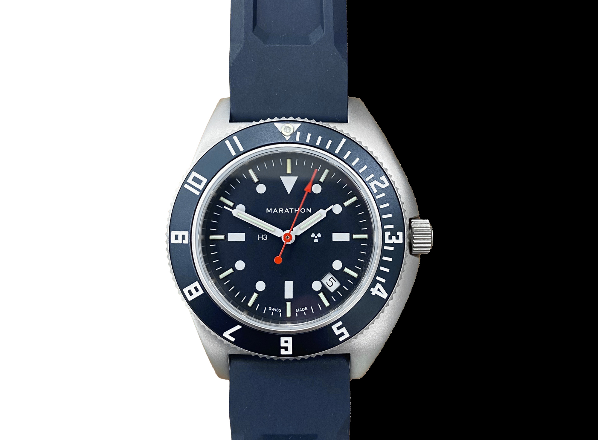 Nové pojetí disponuje 41mm pouzdrem a prezentuje se modrým číselníkem, modrou lunetou a třídílným modrým řemínkem – je to tedy poprvé, co v tak velké míře ovládly barvičky kolekci tool watch značky Marathon.