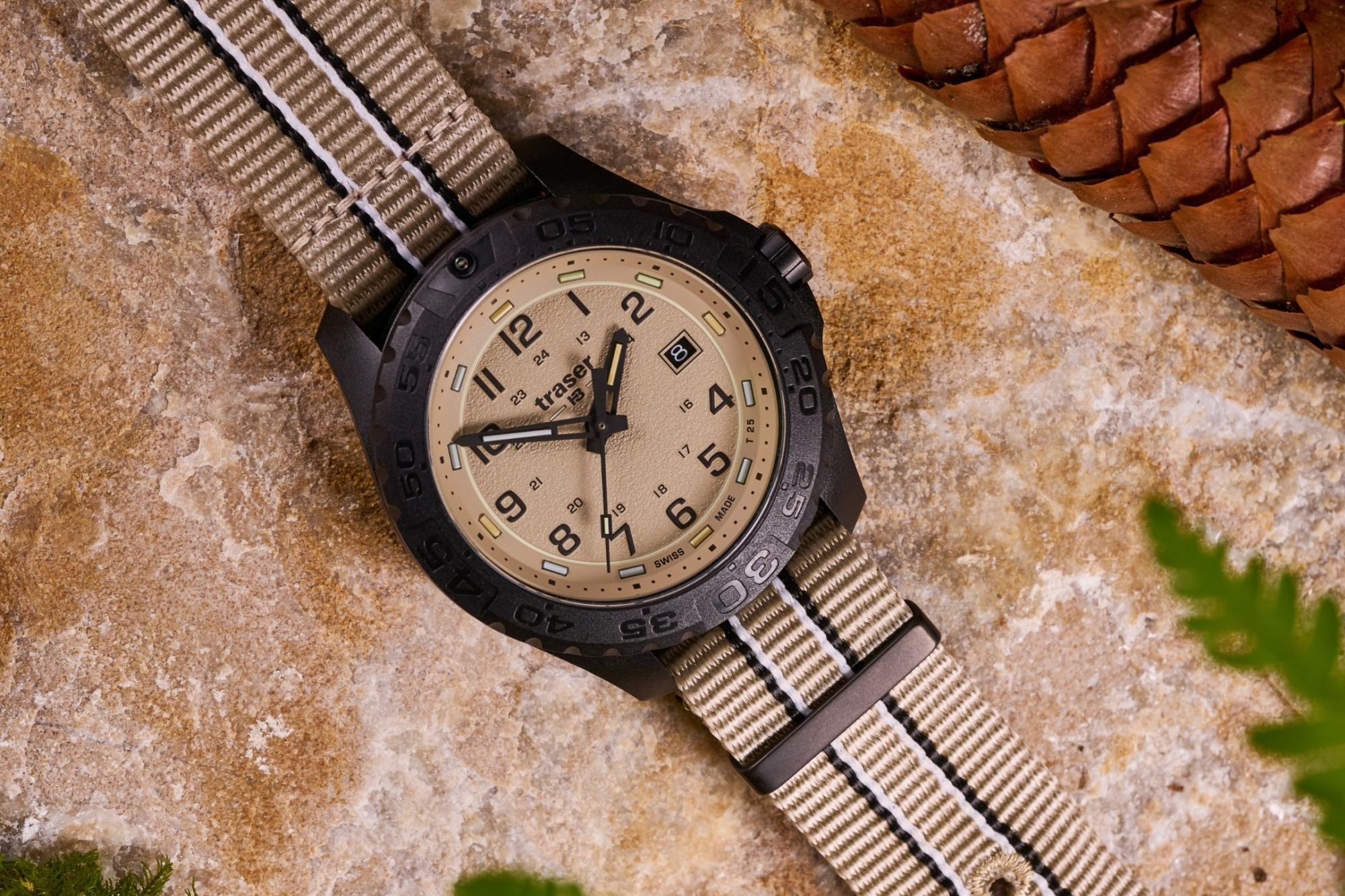 Pouzdro o průměru 44 mm je vyrobeno z polymeru vyztuženého skelnými vlákny, díky čemuž váží pouhých 70 gramů, a přesto odolá tlaku až 20 barů, tedy zhruba vodotěsnosti odpovídající 200 metrů. Nabízí se s novými textilními NATO řemínky nebo osvědčeným gumovým páskem, přičemž detaily jako zesílené švy a barevné ladění podtrhují praktičnost i styl.