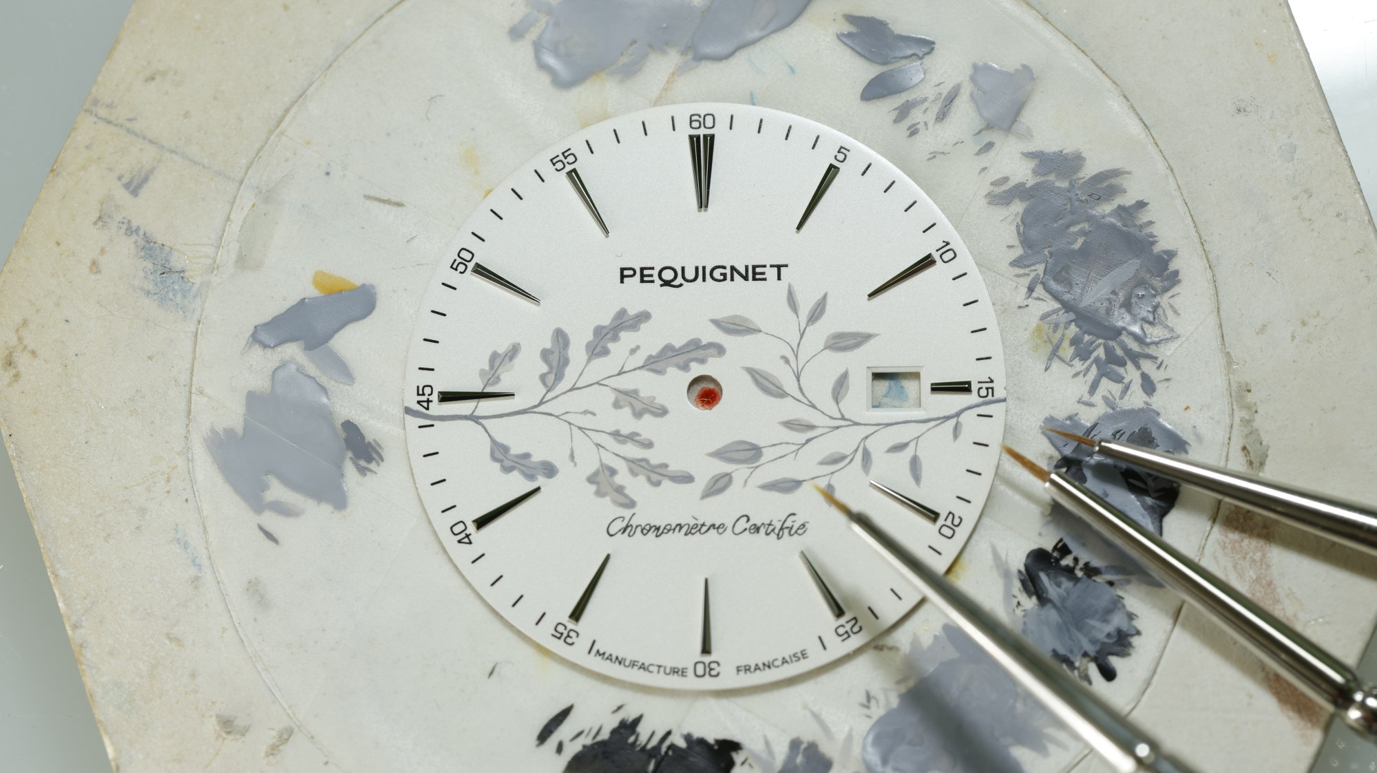 Na první pohled působí Attitude Impériale klidně, téměř minimalisticky. Jemný bílý ciferník je však ve skutečnosti plátnem, na kterém se odehrává subtilní, ručně malovaný příběh. Umělec Philippe Jacquin-Ravot zde vytvořil kompozici dvou propletených větví – dubu a sakury. Dub, pevný a hluboce zakořeněný, reprezentuje Francii. Sakura, křehká a pomíjivá, ztělesňuje Japonsko. Společně vytvářejí obraz harmonie, v níž se síla setkává s elegancí.