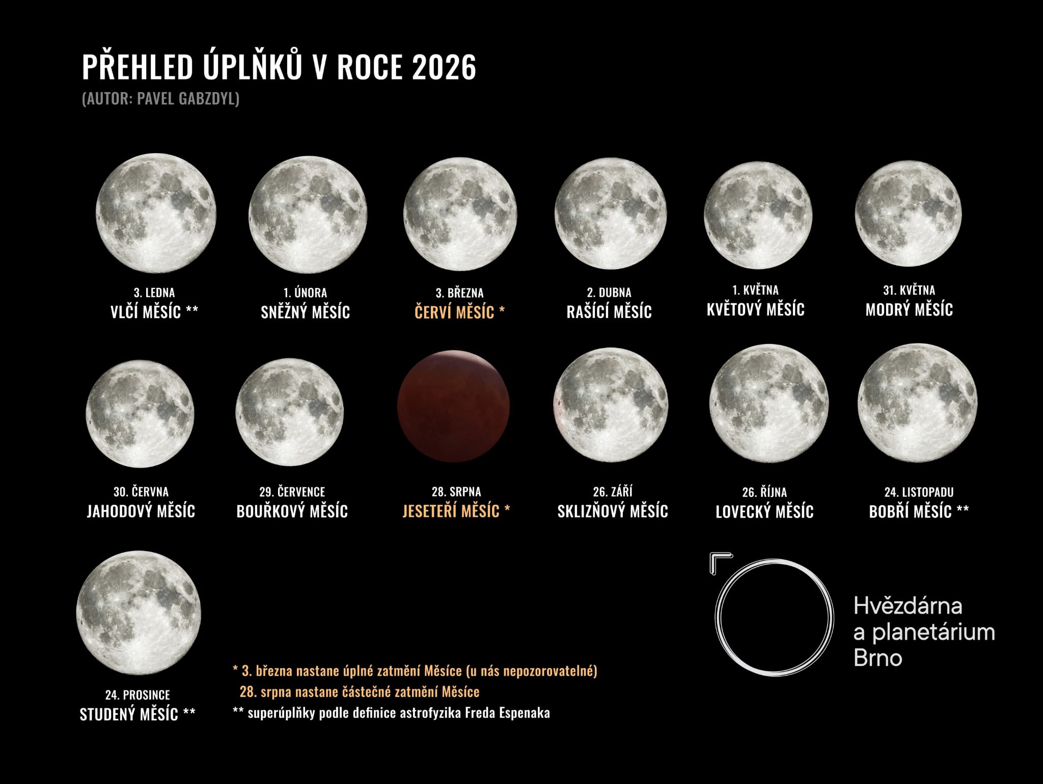 Blížící se vlčí úplněk nastane 3. ledna v 05:30 SEČ a bude pozorovatelný celou noc, díky nízkým lednovým teplotám také mimořádně jasně. Měsíc se bude nacházet v blízkosti svého apogea, tedy nejvzdálenějšího bodu od Země, takže bude působit menší než při „superúplňku“, ale jeho světlo bude díky čistému zimnímu vzduchu velmi výrazné.