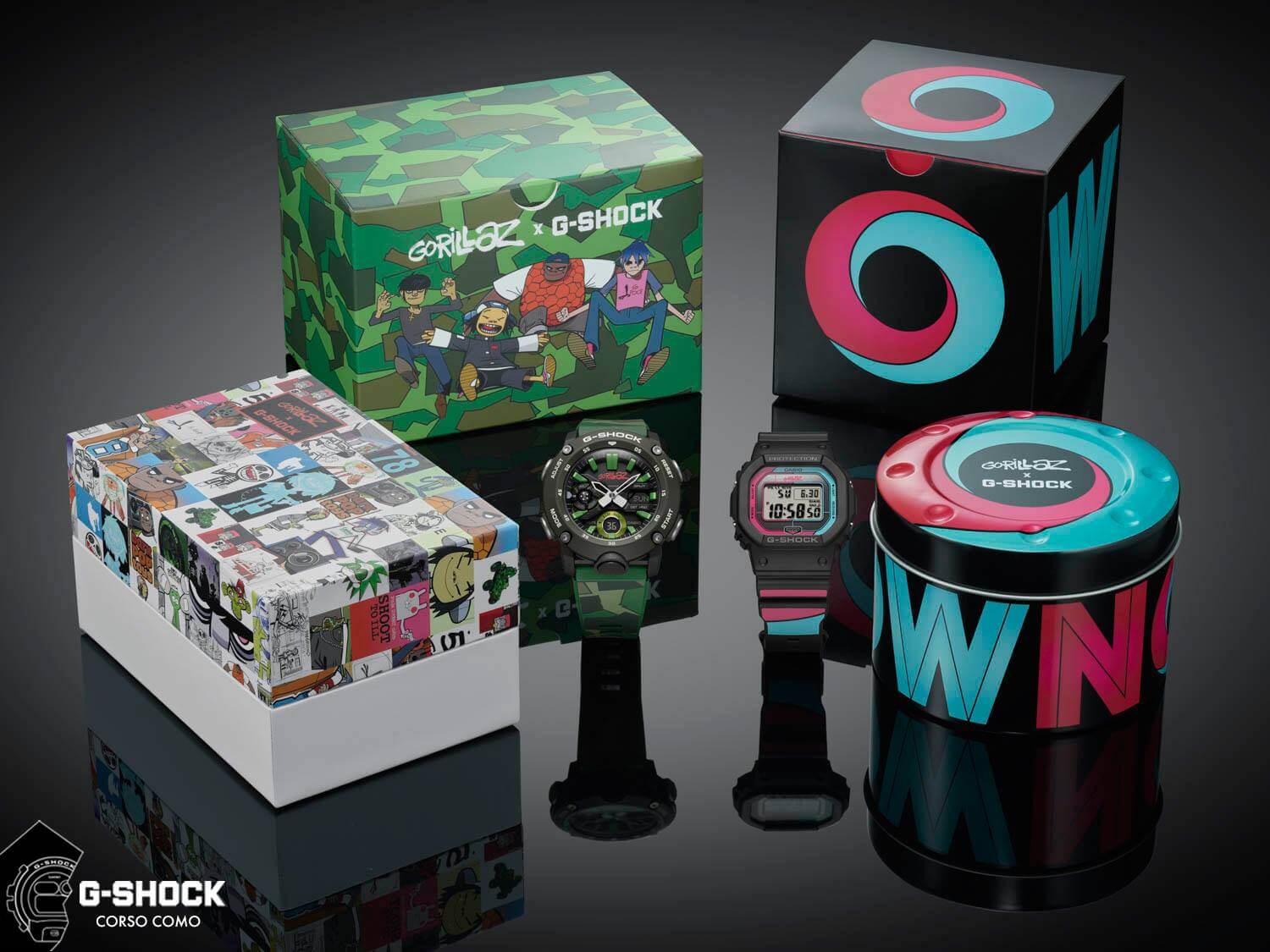 Už v roce 2019 vznikla limitovaná edice G-Shock Gorillaz Collection, která se stala kultem mezi fanoušky. Dva modely – klasický DW-5600 a modernější GA-2000 – přetvořily výtvarný svět virtuální kapely do podoby, kterou můžete nosit na zápěstí. Modro-růžová verze inspirovaná albem The Now Now doslova svítila na zápěstí a po rozsvícení zobrazila nápis „NOW“, zatímco druhý model s maskovacím vzorem vzdával hold debutu kapely z roku 2001.