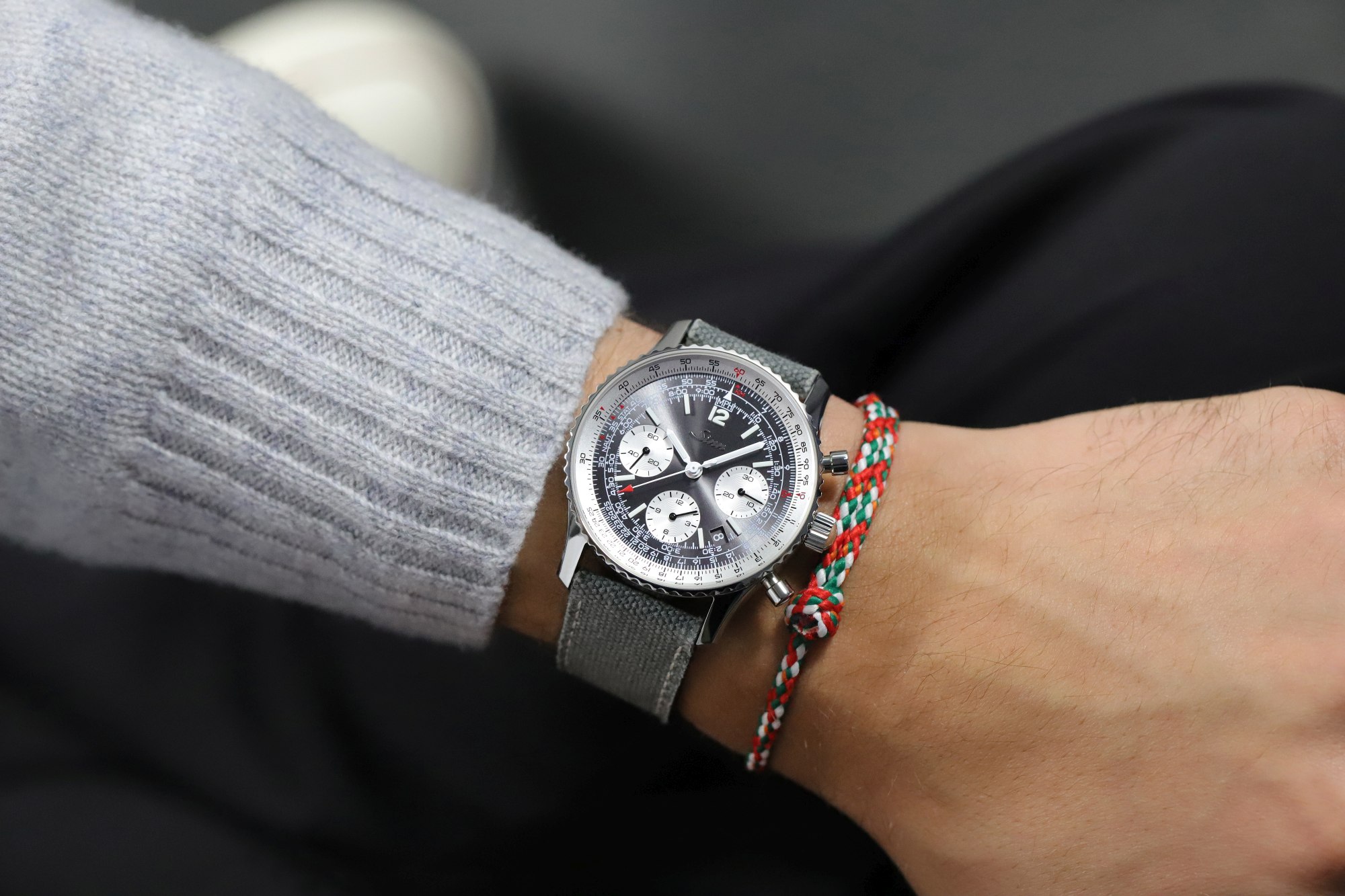 Základem konstrukce je 41mm pouzdro z nerezové oceli, které kombinuje robustnost s relativně kompaktními proporcemi. Hodinky jsou vybaveny oboustranně otočnou lunetou s logaritmickou stupnicí, která spolupracuje s vnitřním výpočetním kruhem na číselníku. Tato kombinace vytváří plnohodnotné analogové navigační pravítko – historicky důležitý nástroj pilotů ještě před nástupem digitální avioniky.