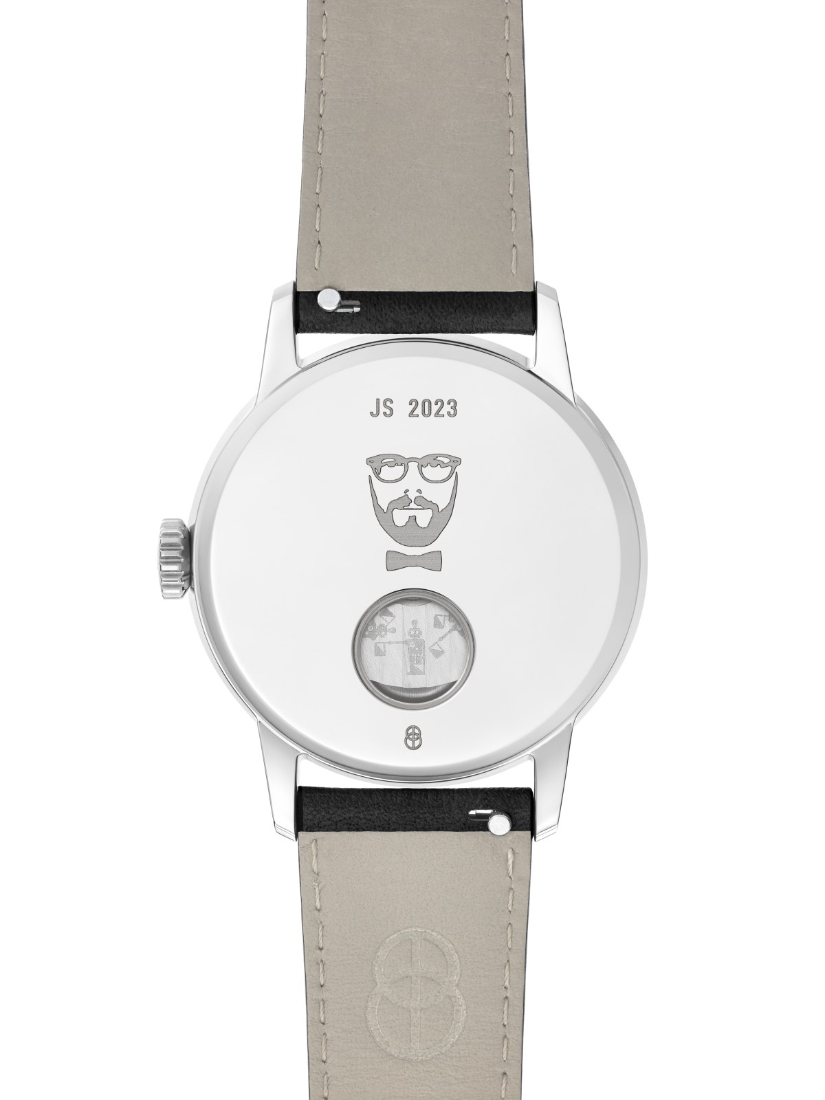V případě jeho osobních hodinek zaujme na dýnku nejenom průhled na mechanický strojek La Joux-Perret G100 se 68hodinovou rezervou nátahu, kterou zajišťuje roboty dekorovaný rotor, ale také podobizna zpěváka a jeho iniciály.