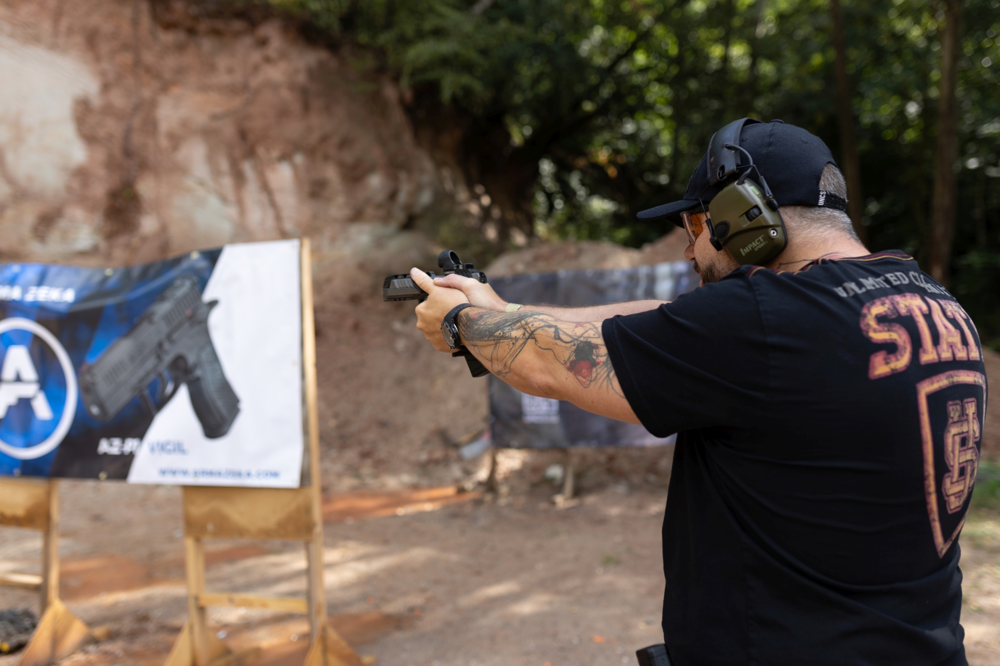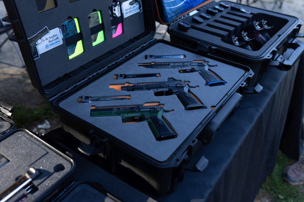 Ty dovezl Lukáš Sudek ze společnosti Laugo Arms a jednalo se o pistole modelu Alien – Creator a Remus. Tou střílí i přítel časopisu a účastník závodu, Kpt. AZ Vojenské policie Lukáš Kvapil, ač ten má vyladěný model Alien Creator Evolution – Optics kit. Nechyběl ale ani mladší, menší bráška Remus, který svou kompaktností přitahoval stejně velkou, ne-li větší pozornost. K představení pistolí různých velikostí a konfigurací Arma Zeky se také vetřela další zajímavá zbraň na pokoukání a to DesertEagle .50AE.