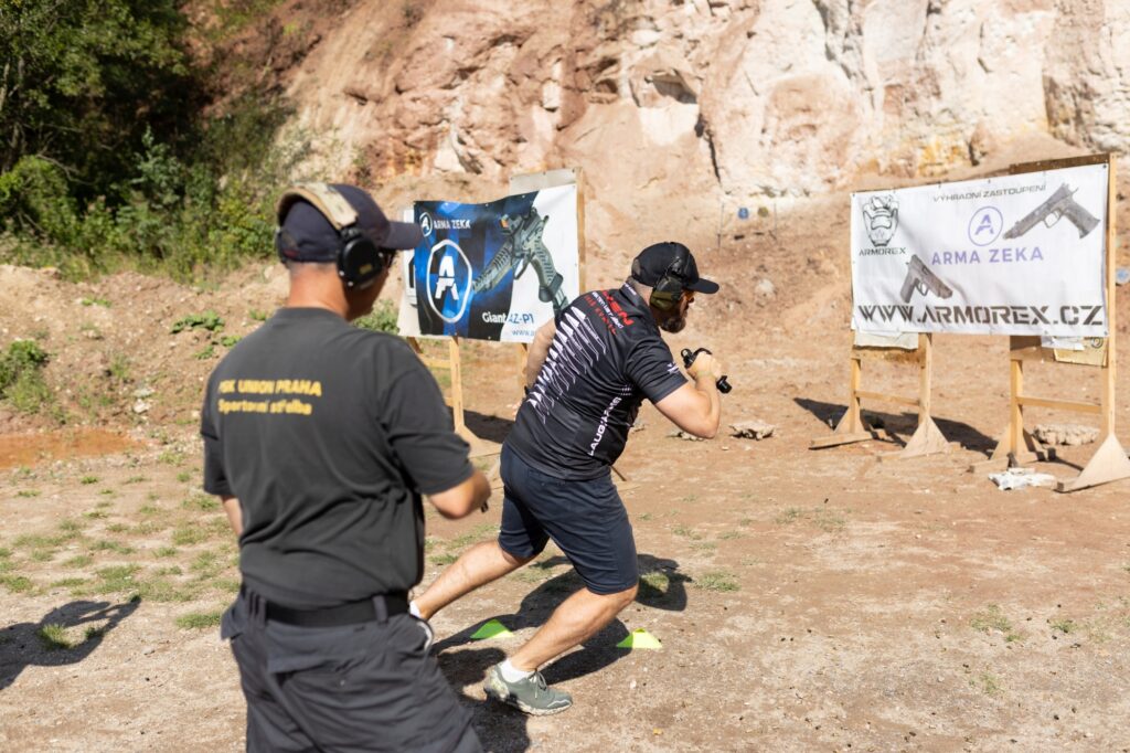 Už se stává tradicí, že v den závodu je krásné počasí. Ještě při opuštění Prahy to tak nevypadalo, ale během pár hodin byl den jako malovaný. Jen pánové stavějící situaci pro střelbu na železné gongy se doslova brodili v bahně. My ostatní jsme si mohli nasadit tmavé střelecké brýle a užít si den plný střílení, povídání, ale i prohlížení a zkoušení. Protože letos naši stálici Arma Zeku, jejíž zbraně opět dovezl autor dynamické stage Vláďa Bureš, doplnily další zbraně české produkce.