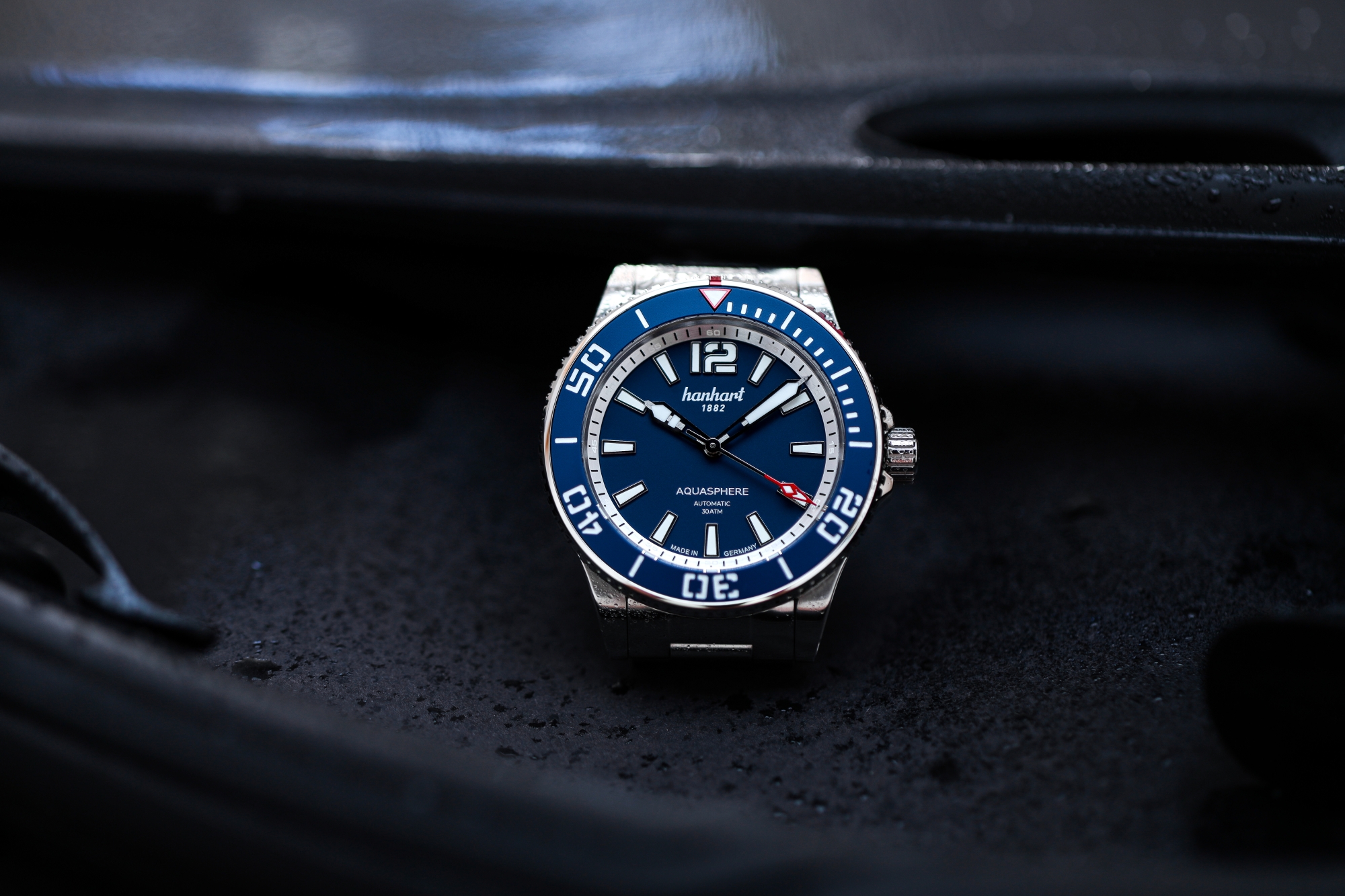 S novou kolekcí Aquasphere zahajuje německý Hanhart novou éru své historie. Výrobce z Černého lesa, specializující se na pilotní a motorsport hodinky, vůbec poprvé představuje samostatnou sérii potápěčských hodinek. S prvním modelem, novými 42mm hodinkami Aquasphere FreeFall Blue, chce tato tradiční značka soupeřit s nejlepšími potápěčskými hodinkami na trhu. Své jméno tak spojila i s profesionálními potápěči, jako je německý freediver Fabio Tunno, který testoval tento model úspěšně v hloubkách po několik měsíců. Na jeho zápěstí bez problémů zvládly ponor do hloubky 110 metrů.
